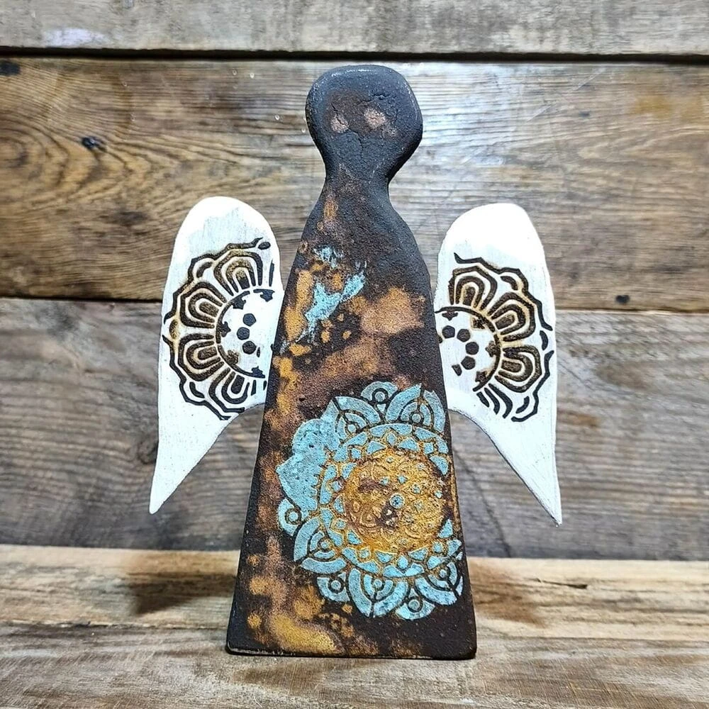 Wybierając ten egzemplarz, stajesz się właścicielem **unikatu 1/1**. Każde uderzenie dłuta i każde pociągnięcie pędzla niosą ze sobą intencję opieki i harmonii. Nie istnieją dwa identyczne anioły – różnią się one nie tylko rysunkiem słojów, ale i drobnymi detalami ręcznie malowanej mandali, co czyni go osobistym talizmanem na całe życie.