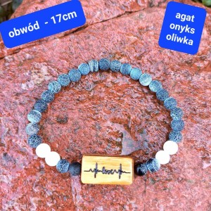 Bransoletka damska z grawerem agat onyks i drewno oliwne