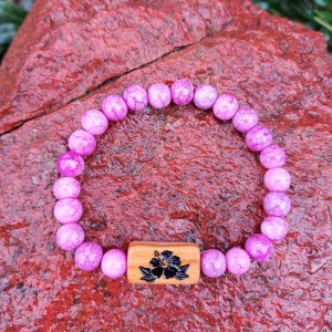 Subtelna Bransoletka Damska: Różowy Jadeit i Grawerowane Drewno Oliwne