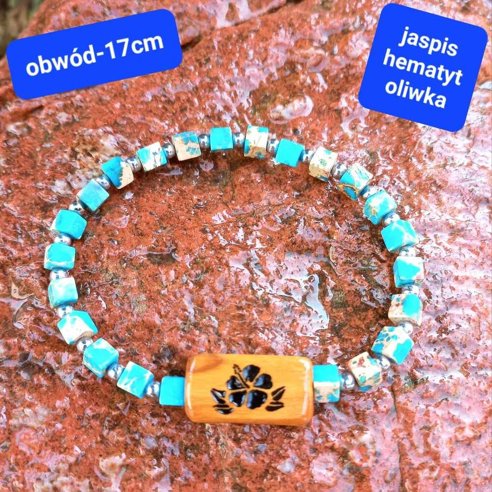 - Jaspis (niebieski, 4,4 mm): Kamień wspierający i wyciszający. Wpływa na kontakty z otoczeniem, łagodzi konflikty, pomaga zachować harmonię wewnętrzną i generuje pozytywną energię.