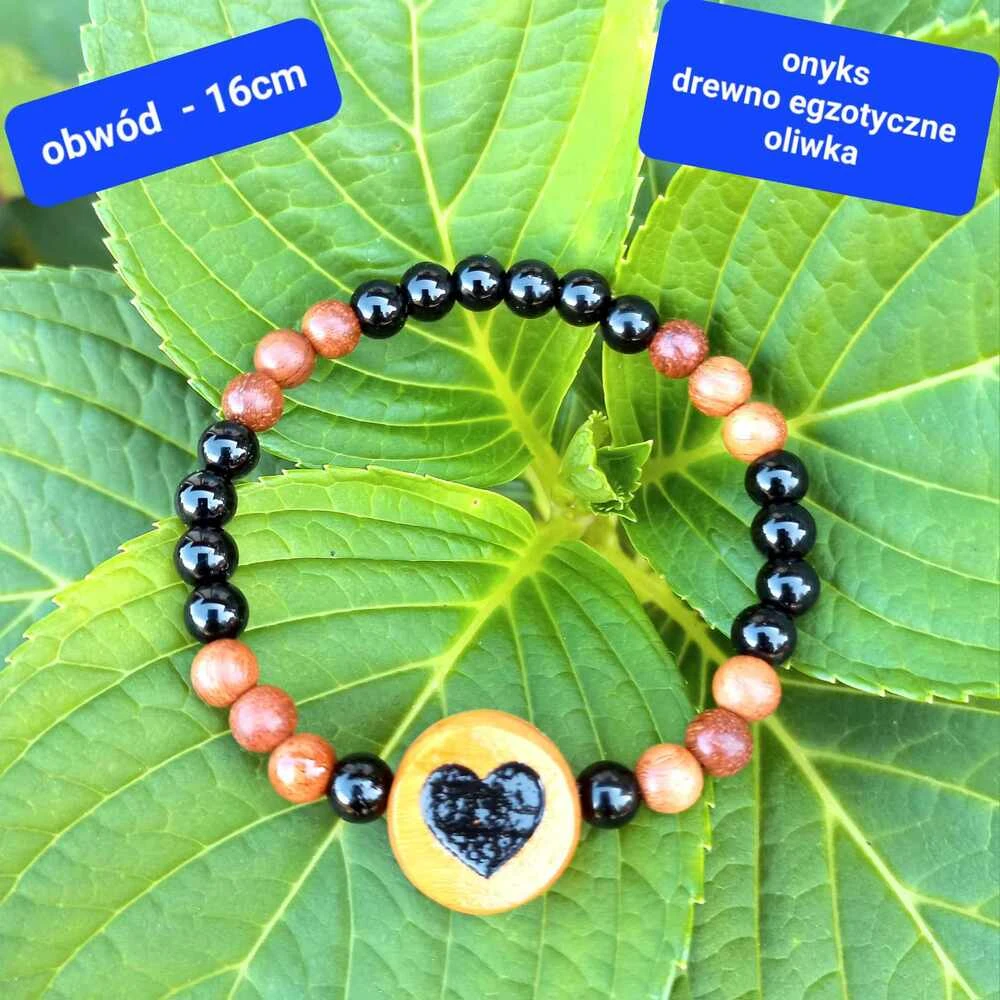 Personalizowana Bransoletka Damska Onyks i Drewno z Emocjonalnym Grawerem Serca