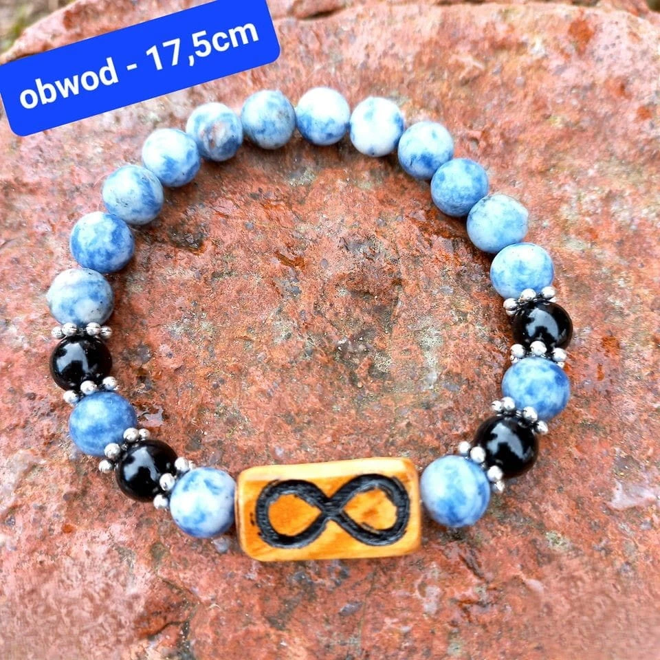 Wyjątkowa Bransoletka Damska Nela Wood: Onyks, Błękitny Jaspis i Drewno Oliwne z Grawerem Nieskończoności