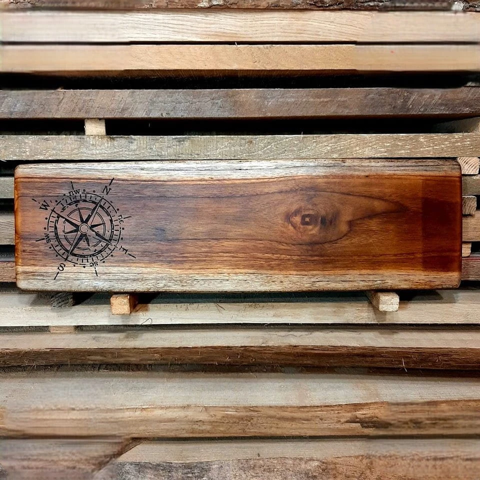 Deska do Serwowania z Drewna Tekowego Nela Wood – Ręcznie Robiona, Kompas Grawer | Prezent dla Podróżnika