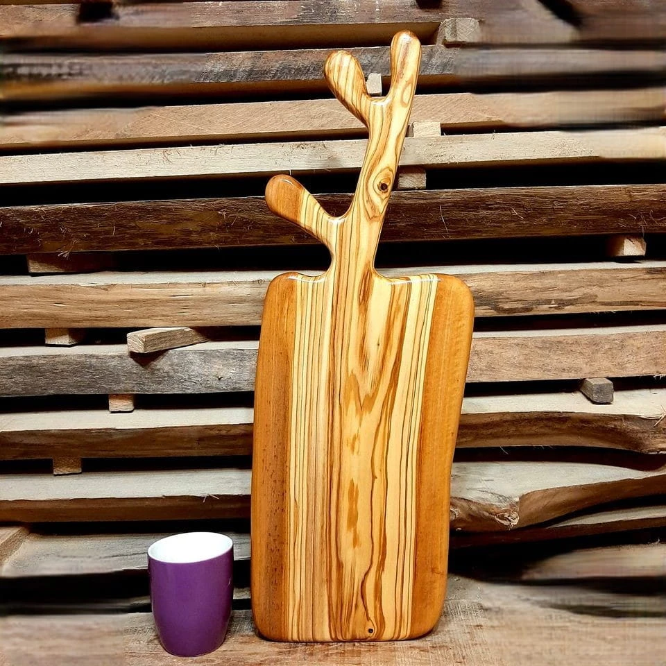 Deska do Serwowania z Drewna Oliwnego z Porożem Nela Wood – Ręcznie Robiona, Antybakteryjna