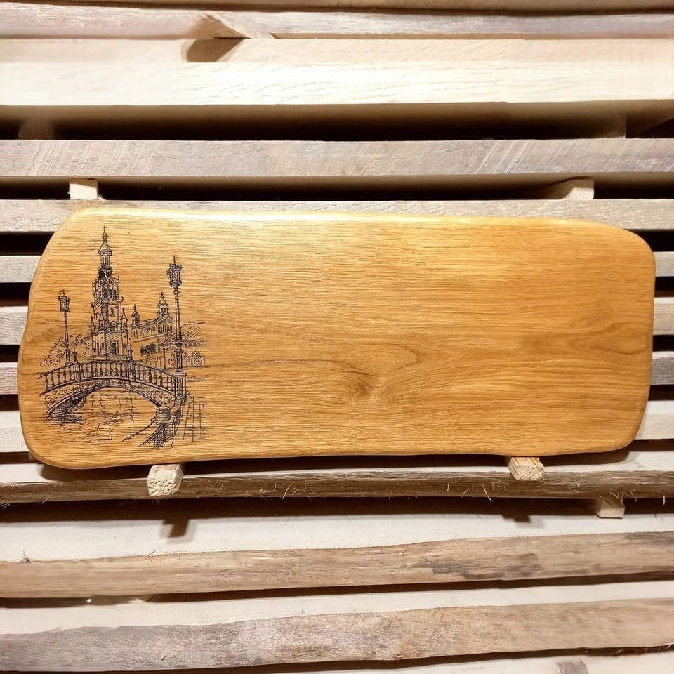 Ekskluzywna Dębowa Deska do Serwowania z Grawerem Mostu i Pałacu – Ręczne Wykonanie