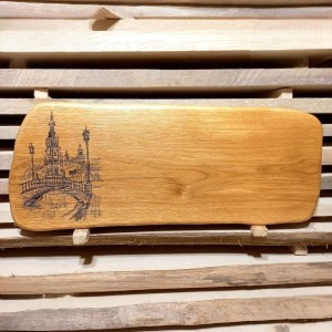 Deska do krojenia i podawania przystawek dębowa z grawerem mostu i pałacu
