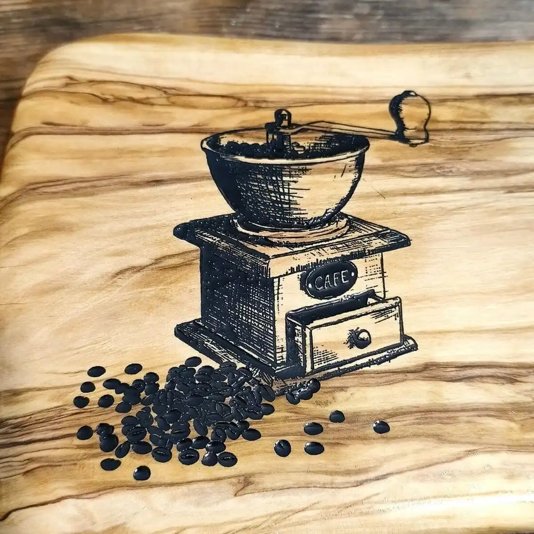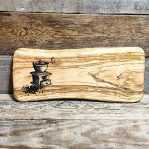 Model z artystycznym grawerem starego młynka do kawy to ukłon w stronę tradycji i powolnych poranków. Nieregularny kształt krawędzi przypomina o naturalnym pochodzeniu surowca, a gęste, oleiste usłojenie drewna oliwnego sprawia, że deska jest niemal "żywa" w dotyku. To idealny pomysł na prezent na parapetówkę, urodziny, czy jako ekskluzywny dodatek do nowej kuchni.