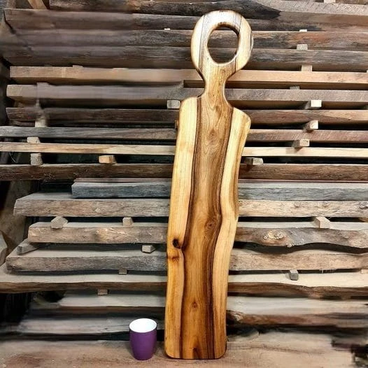 Aby deska zachowała swoje piękno, pamiętaj: myj ją **wyłącznie ręcznie** w letniej wodzie i wycieraj do sucha. **Nie myj w zmywarce** i unikaj długotrwałego namaczania. Co jakiś czas zabezpieczaj ją **olejem lnianym lub kokosowym**, aby odżywić drewno i podkreślić jego naturalne piękno. Przechowuj ją w suchym miejscu, z dala od słońca.