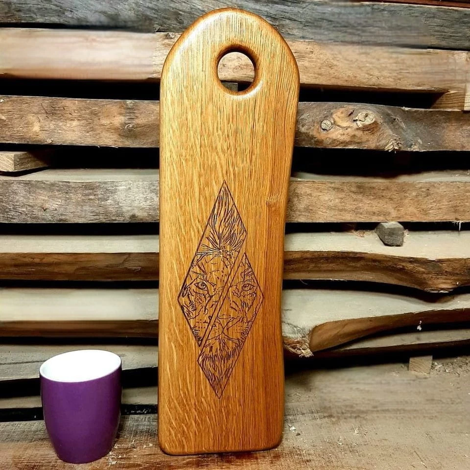 Dębowa Deska do Serwowania Ręcznie Robiona z Wzorem Lwa - 44x13 cm