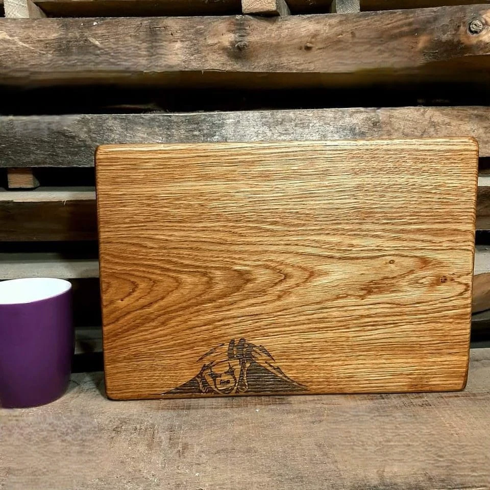 Deska jest zaimpregnowana atestowanym preparatem bezpiecznym w kontakcie z żywnością, co gwarantuje pełne bezpieczeństwo. Unikalna, **wypalana grafika** nadaje desce niepowtarzalności, wyróżniając ją spośród innych.