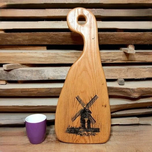 Ręcznie Robiona Deska do Serwowania z Jesionu z Wypalanym Wzorem **Wiatraka**