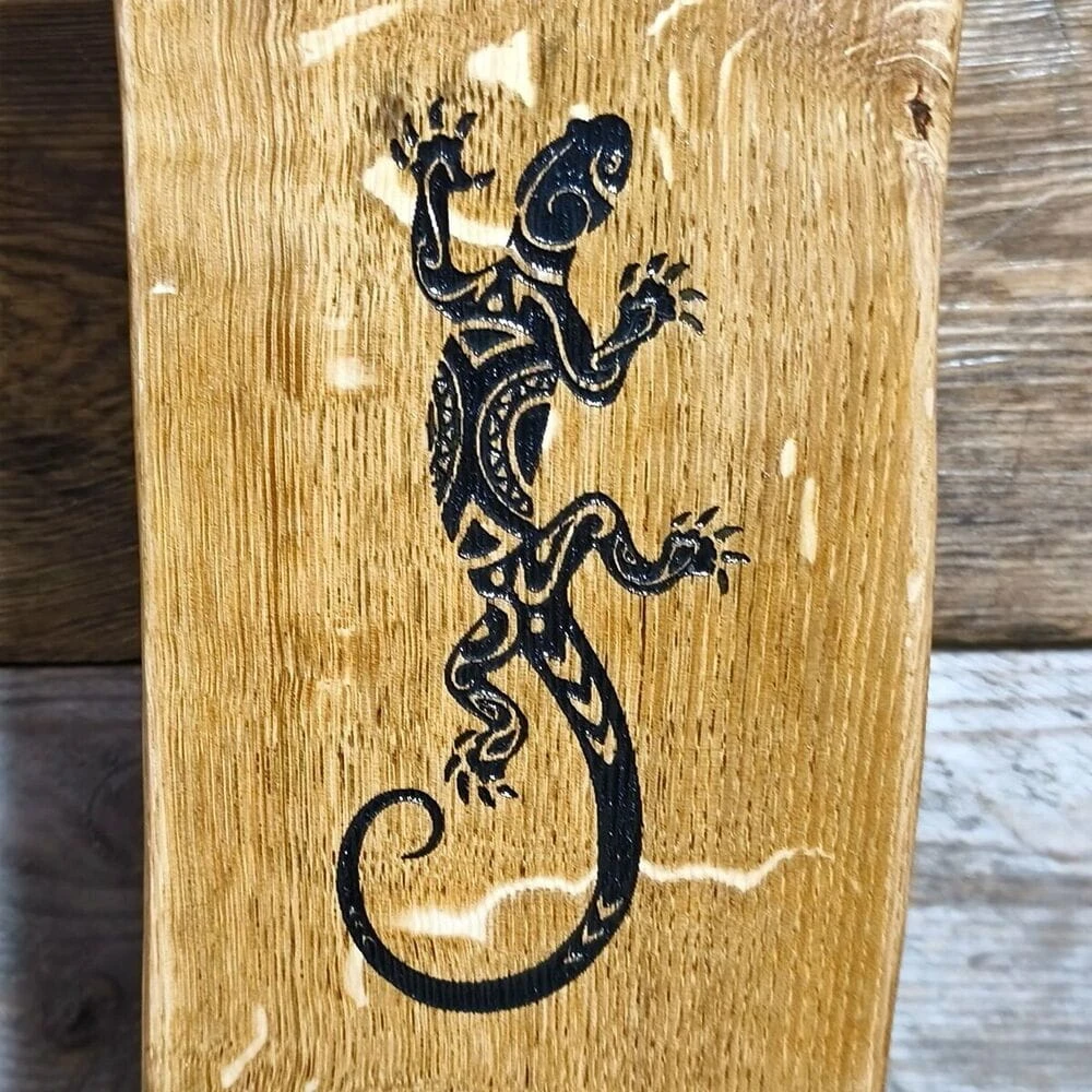 Ręcznie Robiona Długa Deska Dębowa do Serwowania Sushi i Przekąsek – Unikat Nela Wood z Grawerem Jaszczurki