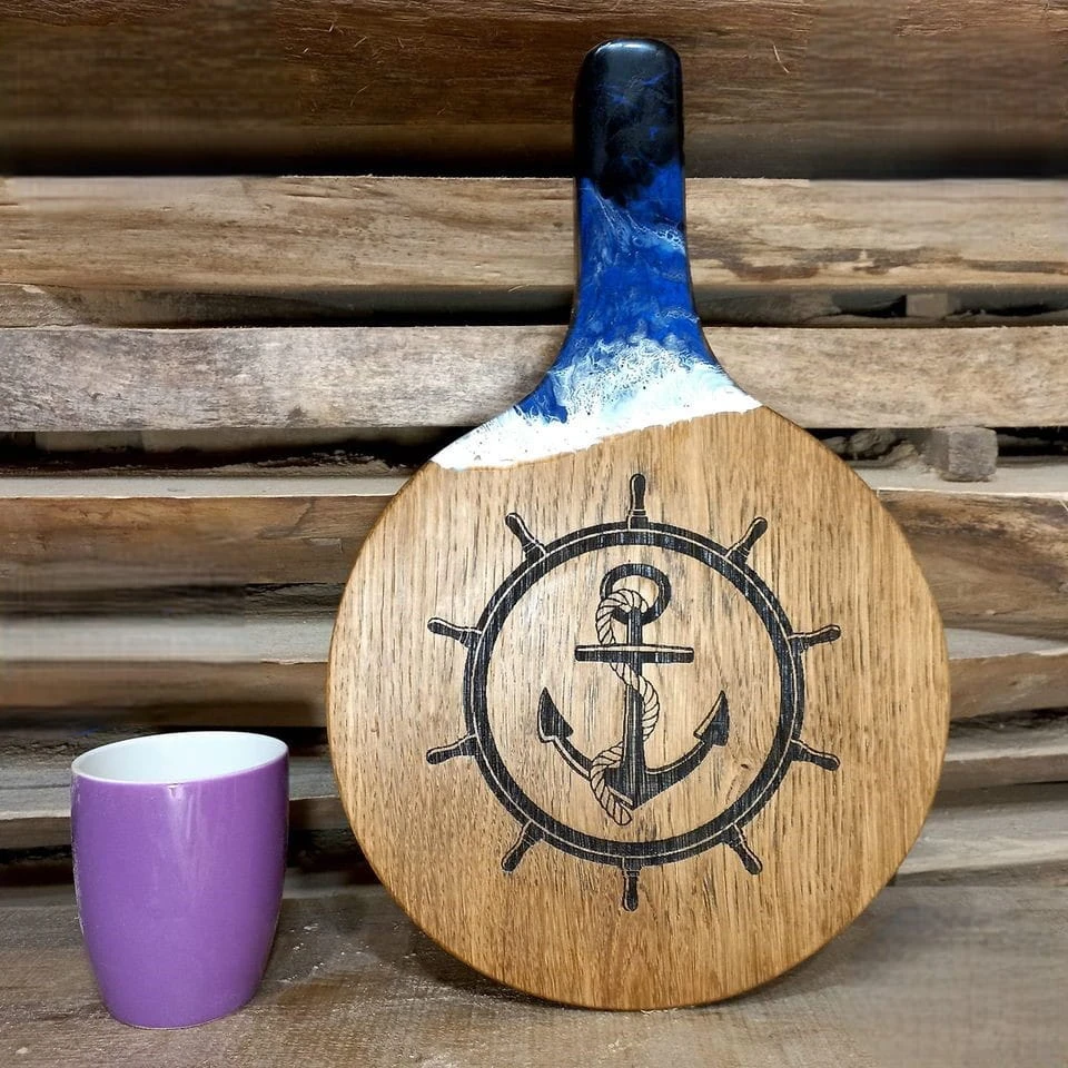 Rękodzieło Nela Wood: Deska Dębowa z Grawerem Marynistycznym i Żywicą | 37 x 24 cm