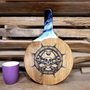 Wyjątkowa deska do serwowania z kołem sterowym i piratem