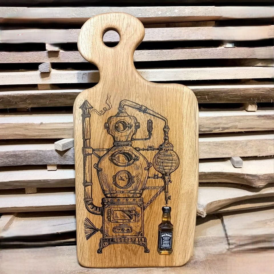 Ekskluzywna Dębowa Deska z Grawerem Bimbrowni i Specjalną Strefą na Miniaturkę Whisky (50ml)