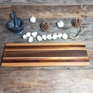 W polskiej pracowni Nela Wood nie produkujemy przedmiotów – my wydobywamy historie ukryte w strukturze pnia. Prezentowana ręcznie robiona deska do serwowania i krojenia to monumentalna fuzja czterech surowców. Szlachetny, nieustępliwy polski dąb, luksusowy mahoń, głęboki merbau oraz ekologiczny bambus tworzą kompozycję, której nie powieli żadna maszyna.