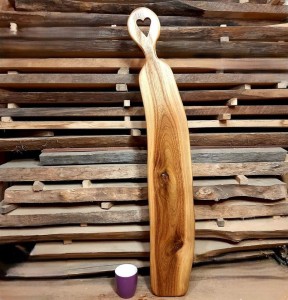 Aby Twoja deska była piękna przez długi czas, myj ją **wyłącznie ręcznie** w letniej wodzie. **Nigdy nie myj jej w zmywarce**. Regularnie zabezpieczaj drewno czystym **olejem lnianym** lub **kokosowym**, aby utrzymać jego idealny stan i barwę.
