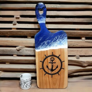 Odkryj harmonię między tradycyjnym rzemiosłem a pasją do oceanu. Ta unikatowa deska do serwowania wykonana z wyselekcjonowanego drewna czereśni to manifest stylu marynistycznego (nautical style). Jako liderzy rękodzieła, w Nela Wood połączyliśmy ciepłą, czerwonawą barwę czereśni z precyzyjnym grawerem kotwicy i koła sterowego, które zostały subtelnie podkreślone artystyczną żywicą epoksydową.