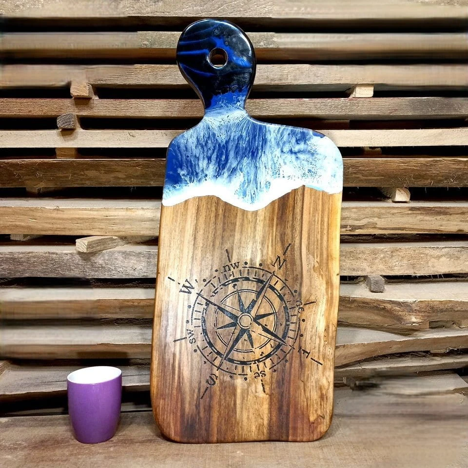 Luksusowa Deska z Orzecha Włoskiego z Żywicą Fala Morska – Rękodzieło Nela Wood