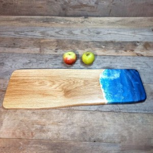 Szukasz idealnego prezentu na parapetówkę lub prezentu ślubnego? Ta duża deska do serów z żywicą 'Fala' to synonim luksusu i dobrego smaku. Podaruj bliskim nie tylko praktyczny przedmiot, ale także element dekoracyjny, który odmieni każde wnętrze, wprowadzając akcent oceanicznej elegancji. To prezent z klasą, doceniany przez miłośników stylu i unikatowego designu.