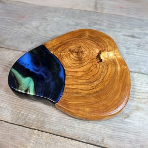 Ekskluzywna Deska do Serwowania z Drewna Oliwnego i Żywicy Nela Wood – Antybakteryjna, Unikat 27x25 cm